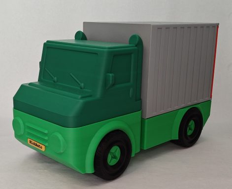 Een stevige en multifunctionele truck waarin alle onderdelen overzichtelijk opgeborgen kunnen worden. De truck is niet alleen praktisch, maar ook zelf een volwaardig en aantrekkelijk speelgoedonderdeel.